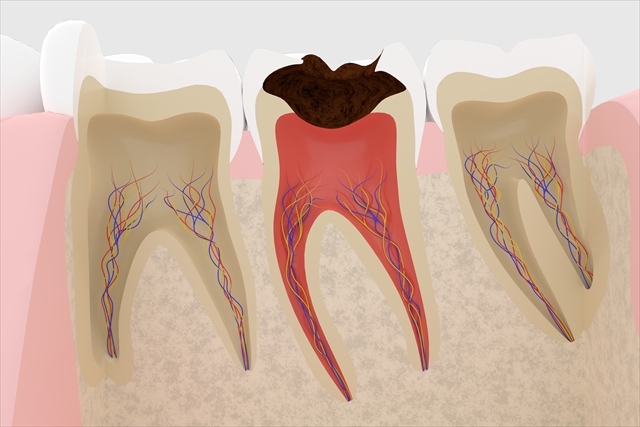 虫歯が深く進行すると、「歯の神経にまで炎症が広がる」ことがあります。