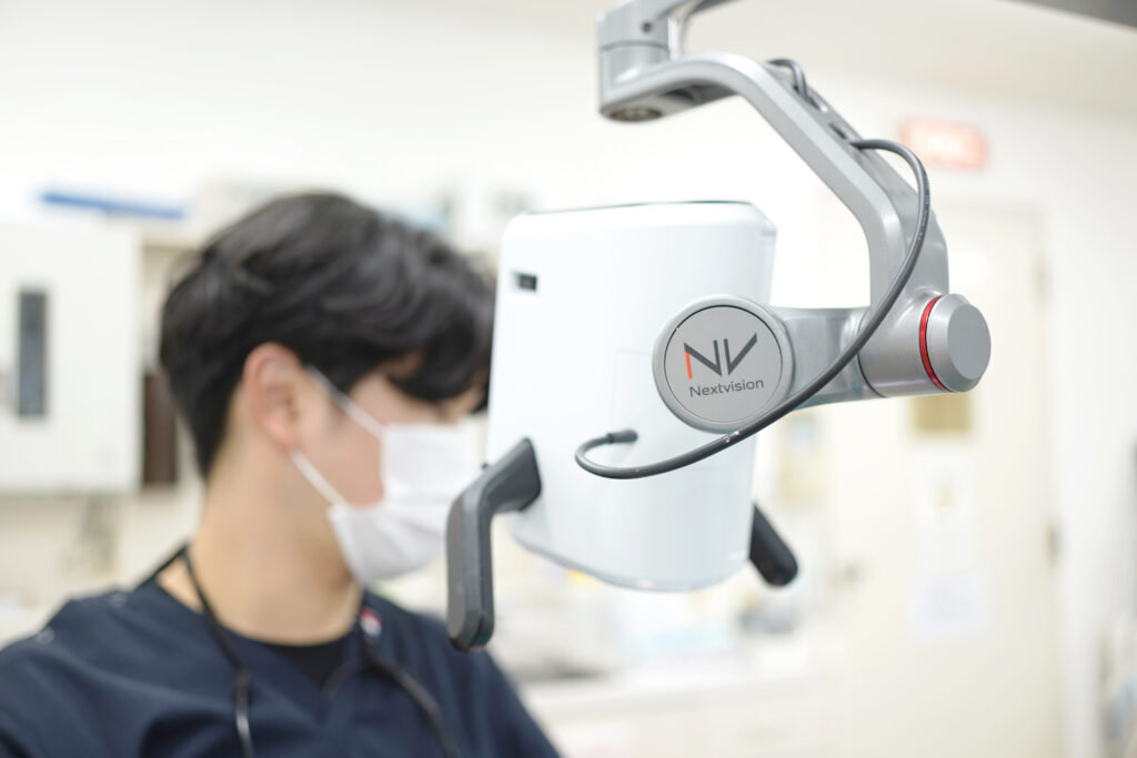 これらの工程の中で「神経・感染物質の除去」「根管の消毒と薬剤交換」「根管充填」は、必要に応じてマイクロスコープを使用して精密に行っています。